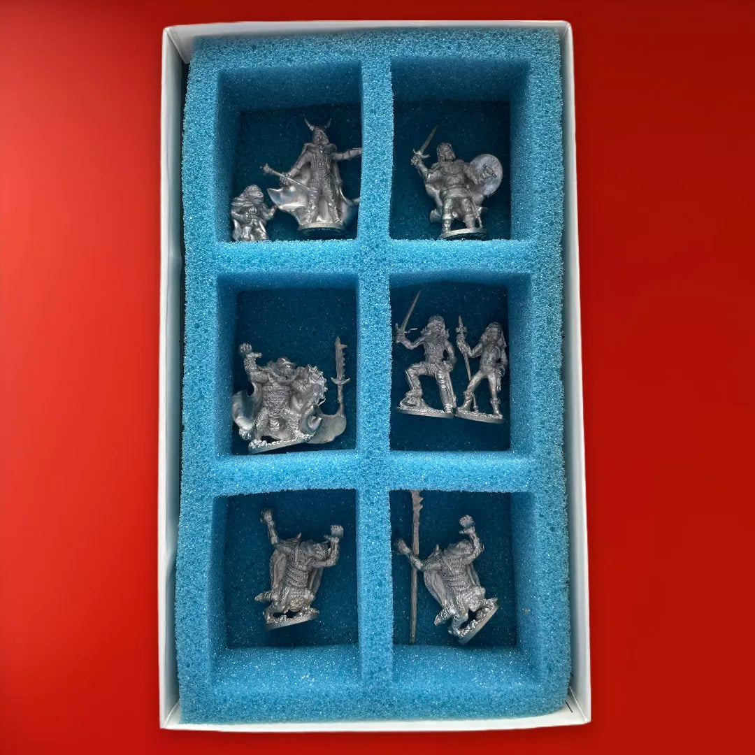 EXCELLENT - Lightly used and likely carefully stored with defects such as slight bending or similar miniature wear and/or slight lid depression if a box set. Figures are either unpainted or partially to fully painted with at least above average quality, with no broken or missing bits, or other damage to the miniatures.